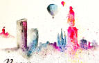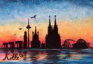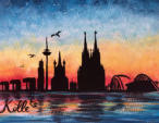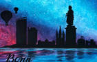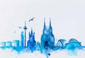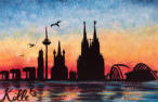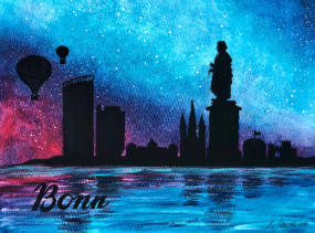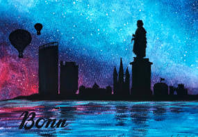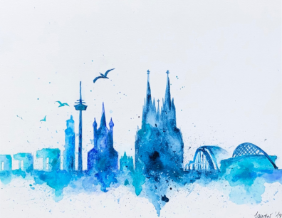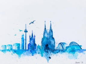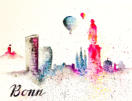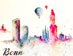 Skyline (Bonn/Köln) am Abend oder Aquarelltechnik